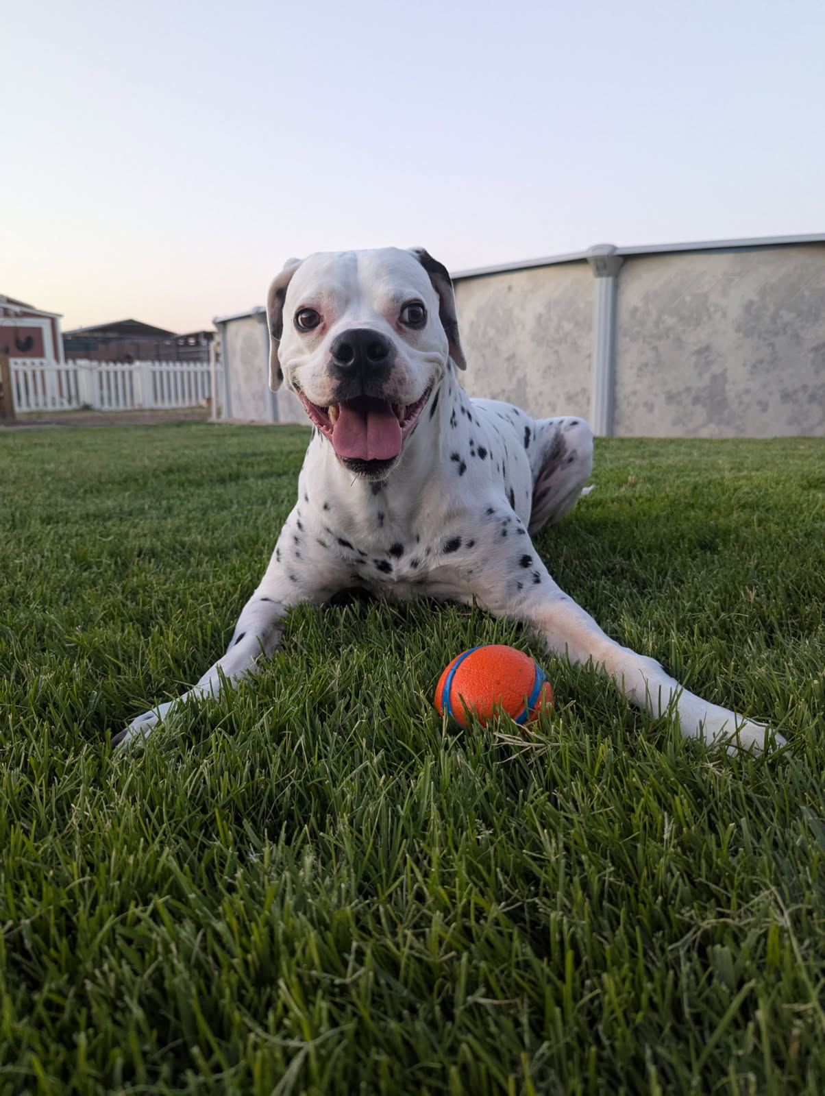 Kirby’s absolute favorite toy is his XL Chuck It ball — he never turns down a good game of fetch! When he’s not playing, you can usually find him on the lookout for rabbits in the backyard (don’t worry, he’s nowhere near fast enough to catch one). After his “hunting adventures,” Kirby loves to curl up on his sofa for a well-deserved nap. His goofiness is what makes him so special — he always keeps everyone smiling!